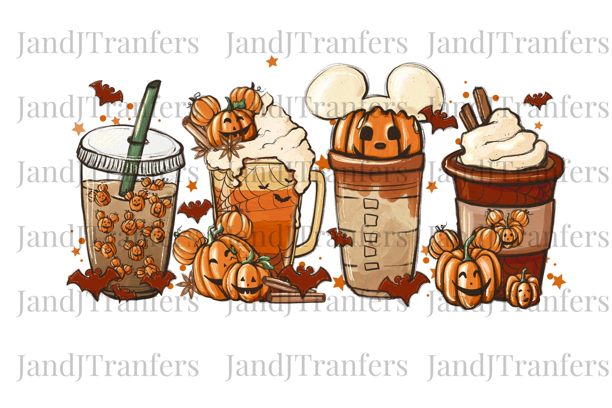 Mickey Head Fall Coffee Cup Latte DTF Transfers Ready To Press, Direct To Film Transfer ,DTF Prints